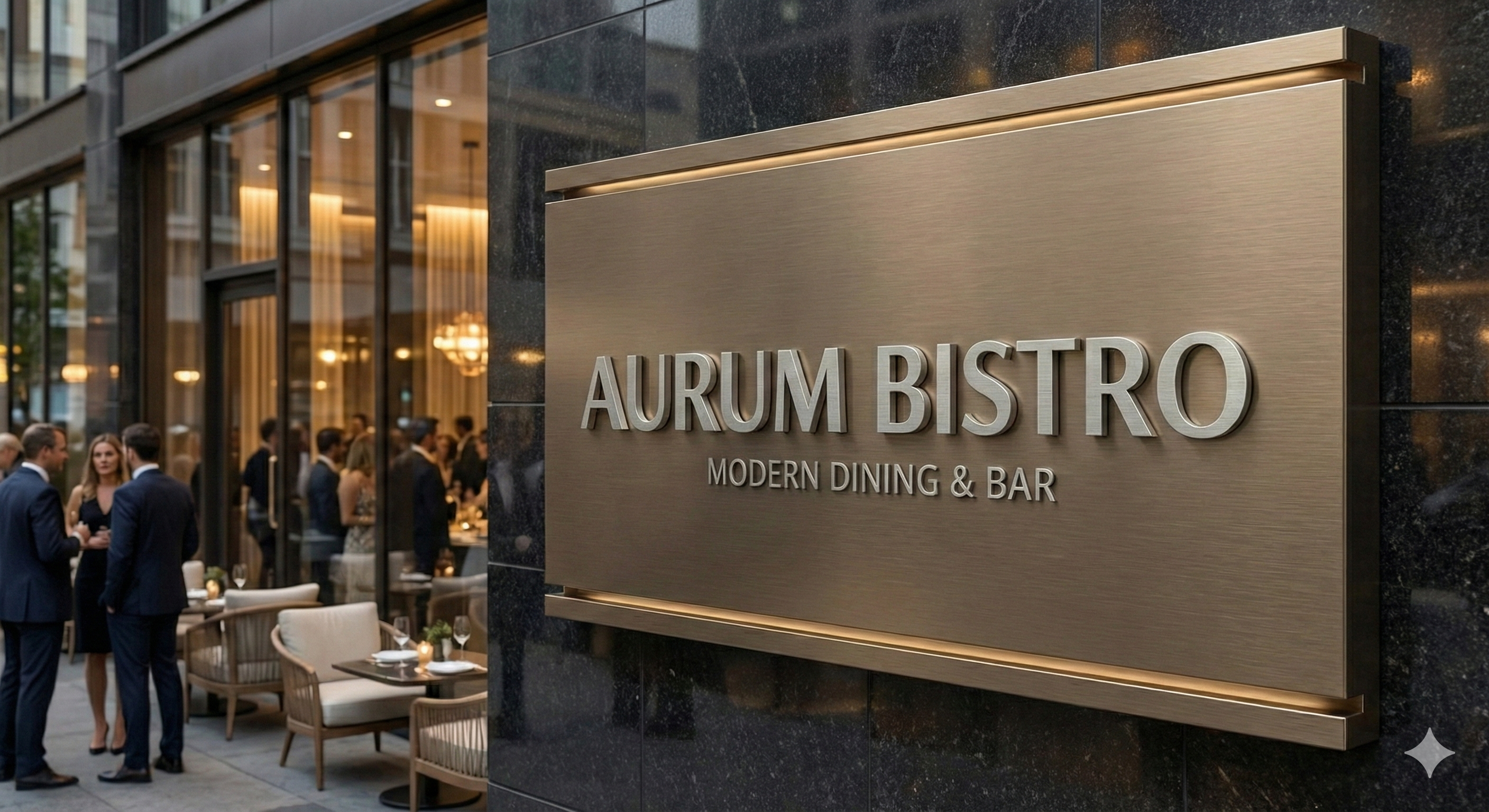 Resistencia con un toque industrial. Letras de Alucobond para exteriores de alto tráfico.